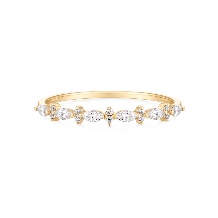 Discover the timeless beauty of this elegant gold ring adorned with sparkling diamonds. Its delicate design features a series of marquise-cut stones that catch the light beautifully. making it the perfect accessory for any occasion. Whether worn alone or stacked with other rings. this piece adds a touch of sophistication to your jewelry collection.